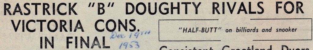 Despite Jack being behind in a game by 19 – 106 he still managed to win a game against J. Pettifor, 150 – 112. Even with all six players winning, Rastrick couldn’t win the game due to the handicap that Victoria Cons, “B” had. Rastrick were in fact never going to win the league as the handicap most of the clubs received was between 200 and 450. This is a typical result – Rastrick would have to limit each of their opponents to less than 75 if they could hope to win, when playing a team with 450 start.