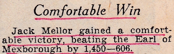 After not entering last year we see that Jack is to play the Earl of Mexborough in the English Amateur Billiards Championship. The Earl is the president of the Billiards Association and Control Council and the Yorkshire Billiards Association. Jack wouldn’t be the first to play him, as a number of years ago Jack Brindley played him. He should have then played Harold Burkinshaw last year in Yorkshire Championship but had to withdraw due to a petrol shortage. Jack was not at his best but had a lead of 672 – 356 after the first leg at Leeds, with breaks of 51, 72, 50 and 55. In the home leg it was a similar story up to the interval, though afterwards he managed to show his class with breaks of 126, 67 and 85 unfinished to run out a comfortable winner 1450 – 606.