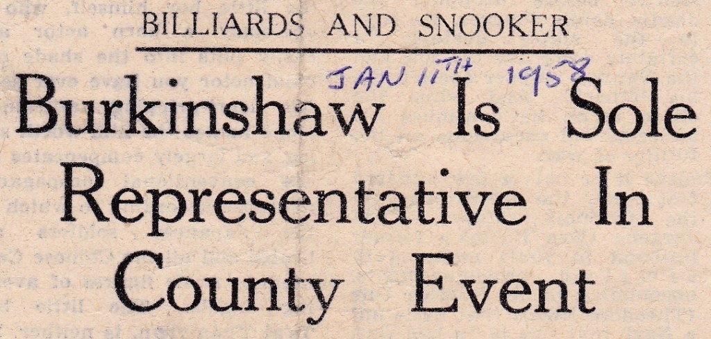 Jack along with Trevor Sisson, Clifford Percival and Jack Firth had entered the Yorkshire Snooker Championship and the draw gave Jack a bye in the first round. The draw for the second round sees Jack travel to Carcroft, Doncaster, in the first leg to play ex-champion Lew Taylor. Taylor is one of the finest snooker players in the county and is well known as a good potter and excellent tactician. With no other reports we must assume he lost but at this time in his career he is very much a billiards player. I think he will practice billiards a lot more than snooker and the opposition in the Yorkshire competition is very good.