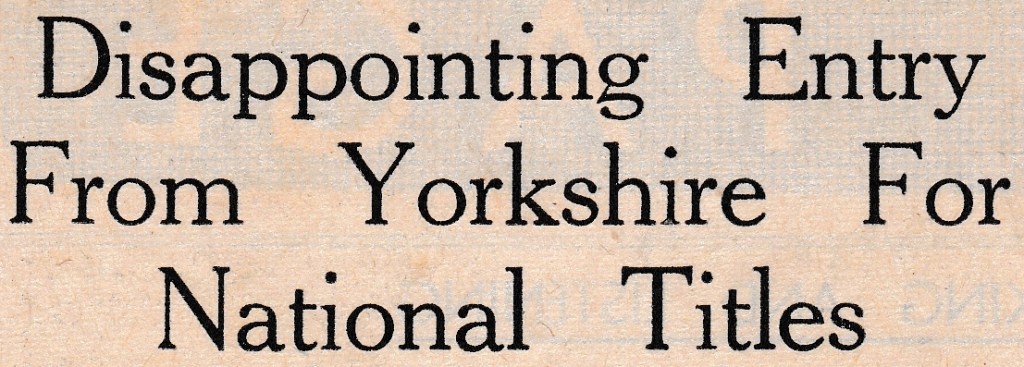 The Yorkshire Association think the drop in numbers entering their competitions is due to the travel involved, and so have split the competition into four zones. The Huddersfield area had 8 local players, Bradford and Wharfedale 8, Leeds, Wakefield, Morley 8 and South Yorkshire 7. The winners of each local mini competition would then go into a draw for the Championship semi-final. There isn’t any real difference overall, it just means that in the early rounds players will not be travelling the length and breadth of Yorkshire. The only real travelling will occur in the semi-final, home and away, with the final venue situated somewhere midway between the two finalists. It does mean that players will be playing the same men they play in their own local games though, which in my opinion defeats the object of the competition.