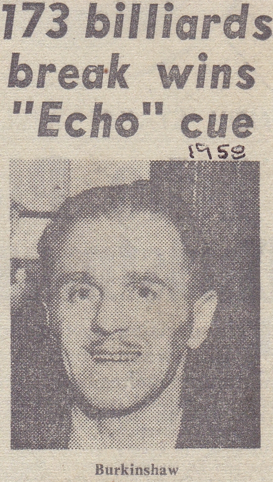 Well last year was much the same as the previous year, with the Huddersfield Billiards Championship and, the now customary, Yorkshire Inter-District Billiards League. There was one other team trophy of note; that of the Huddersfield Snooker League for Paddock Conservative Club. As for century breaks, we have reports of only four, but they were big ones: 126, 146, 160 and 149. It appears that either Jack doesn’t score as many as he used to when he was in the Halifax League, or we simply don’t have as many clippings as we did when he “assisted” Rastrick Constitutional.