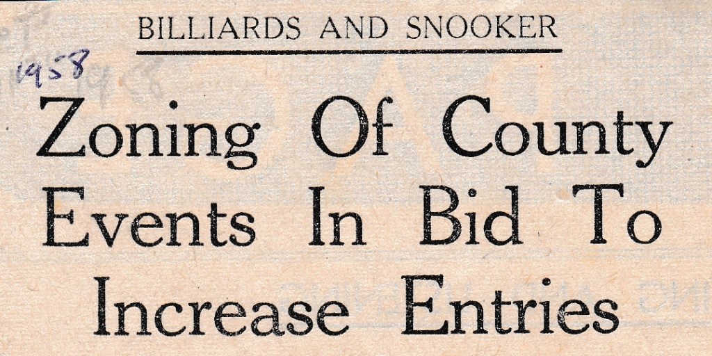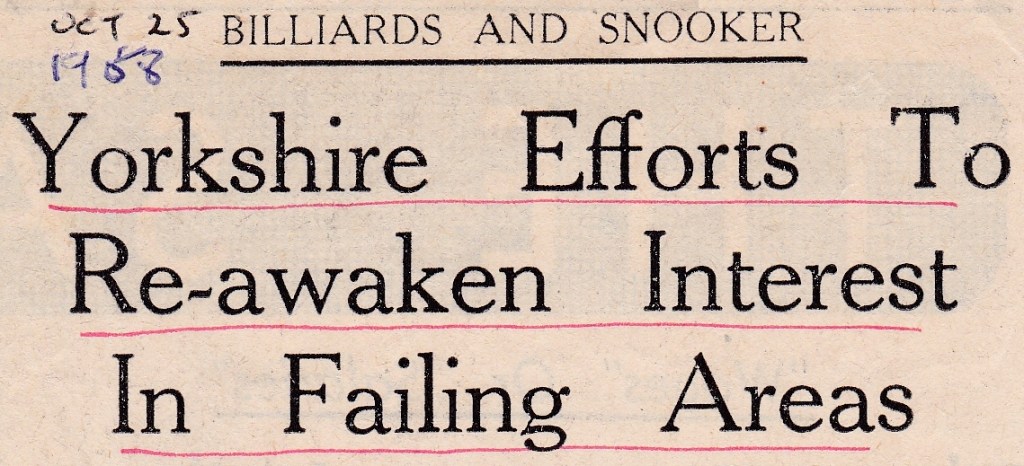 The Yorkshire Billiards Association were perturbed at the loss of some of the Districts, which was felt due to lack of anyone wanting to put the effort into organising them. To try and create interest in these lost Districts and perhaps generate new ones, they had introduced a new competition, The Champion Of Champions. It would have the champions of the Associations affiliated to Yorkshire playing a knock out competition on neutral tables in the Districts in which the interest is lagging. Huddersfield would have Jack, the billiards champion and his club mate, Frank Stringer, the snooker champion competing. If the competition proved successful it would become a regular feature in the County Association.