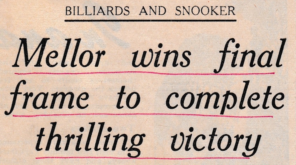 As was the case last year, Paddock Institute and Conservative Club have entered the Yorkshire Snooker Knock-Out Competition and have progressed into the second round. They were level at three frames apiece after their home leg against Firth Park WMC, and still level after the last frame in Sheffield, meaning a deciding frame for the last two players. As Jack had played last he had the fate of Paddock in his hands, and after a dour struggle finally came out on top. Earlier in the evening Jack had played S. H. Smith of Firth Park in the second leg of his Yorkshire Billiards match which he also won – a good nights’ work.