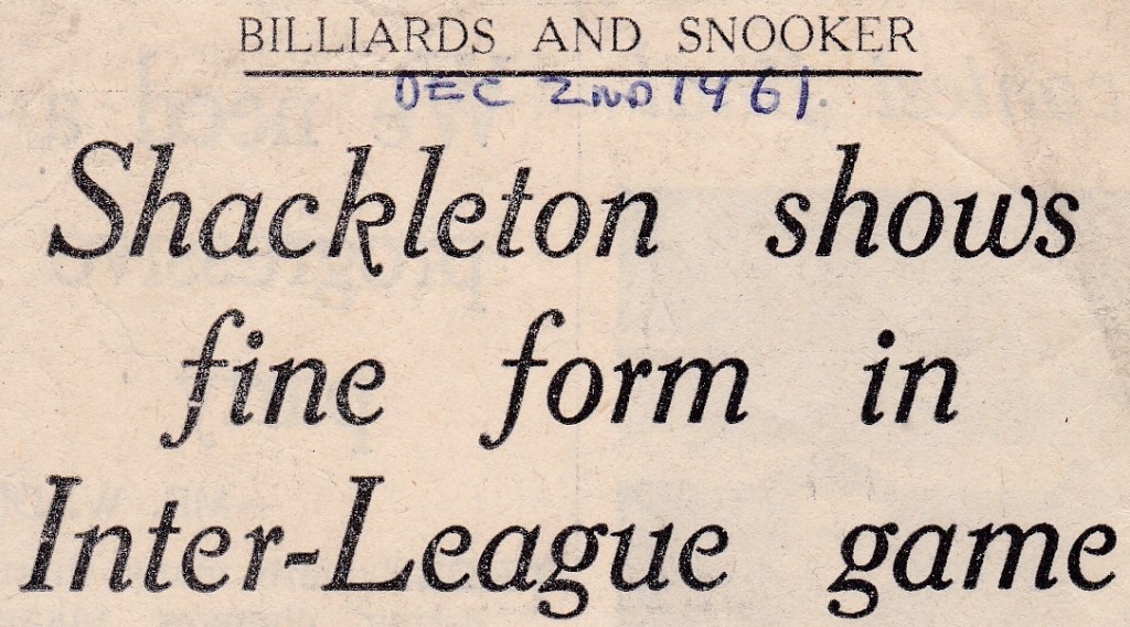 There were six districts in this year’s Yorkshire Inter-District Billiards League, as last year, but Yorkshire have decided they would only play each side once in one section. You might remember that last year it was split into two sections, and they played each other twice as well as one team from the other section. Cyril Shackleton takes the place of Brian Cousen who didn’t have the best of a debuts last year. Cyril played the year before when Gladney retired but was dropped for Brian last year; meanwhile, Sid Burhouse will be the reserve.