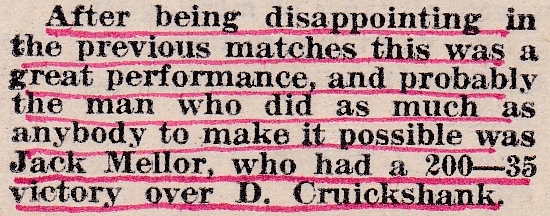 It would appear that there was a new scoring system in the Yorkshire Inter-District Billiards League, which had previously been 2 points for a match win and 1 point for the aggregate, but was now 3 points for the aggregate.