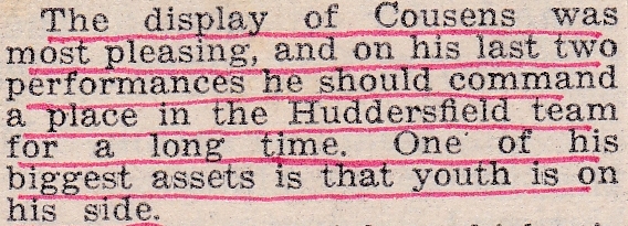 The fourth game in the league was against undefeated Wharfedale, who had only lost one individual game out of the nine played, so it was a surprise when Huddersfield beat them by winning all three games and throwing the league wide open. Brian Cousen, returning to the side in place of Jack Firth, justified his inclusion and Jack avenged his previous loss at home to D Cruikshank with a break of 101 to score his victory.